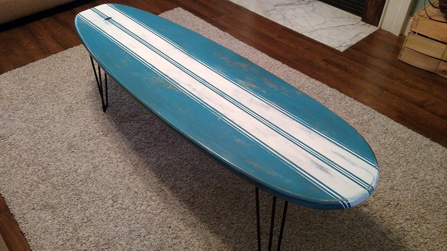 Best surfboard coffee table designs: So excited to offer this short board surfboard coffee table. And as the weather turns south that cup of coffee or tea needs support. Customize or add related items. A surfboard can be made into a coffee table.